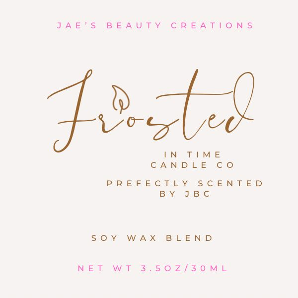 Discover the distinctiveness and elegance of “Frosted In Time Candles”. Meticulously handcrafted by JBC, no two candles are the same. Immerse yourself in a truly unique atmosphere with our expertly crafted candles. Indulge in the perfect scent, carefully chosen by Jae..