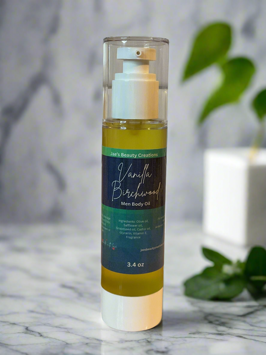 "Infused with the scents of vanilla and birchwood 🌿, our men body oil offers a luxurious and nourishing experience for your skin. With its unique formula, it provides long-lasting moisture and essential nutrients to keep your skin healthy and rejuvenated. Give your skin the care it deserves with Vanilla Birchwood men body oil."